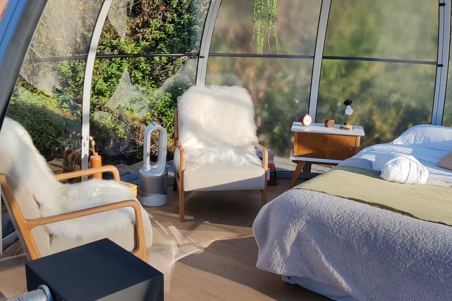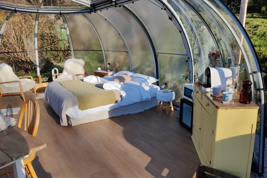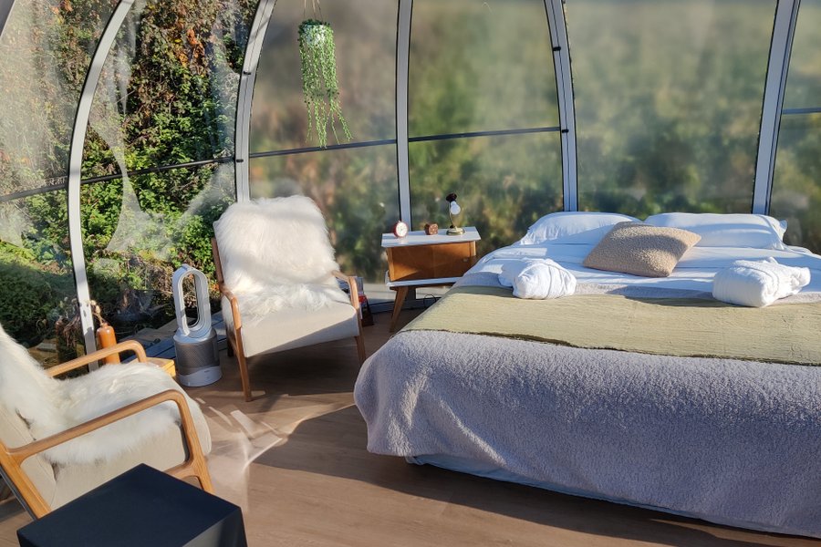 Doté de couchages modulables, ce dôme peut accueillir de 2 à 4 personnes, idéal pour les couples, les familles ou les amis.