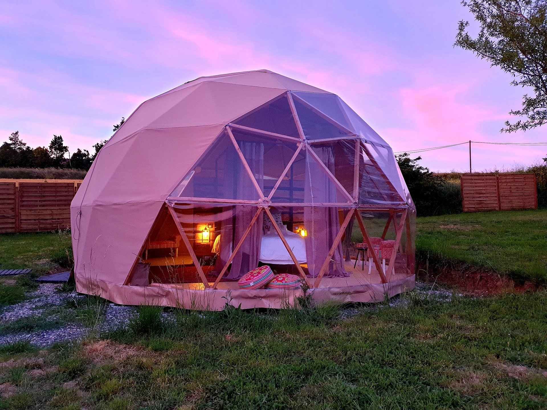 Le Dôme Nyx est un superbe hébergement fait entièrement de bois et de toile, il vous permet d’observer le ciel étoilé depuis votre lit baldaquin queen size.Installés dans votre jacuzzi privatif à l’accès illimité v……