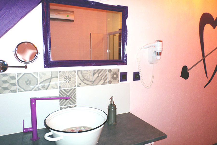 Découvrez cet hébergement unique, baigné dans des teintes de passion et d'amour, parfait pour des instants d'intimité dans une atmosphère douce et apaisante où le temps semble s'arrêter le temps d'une nuit romantique.