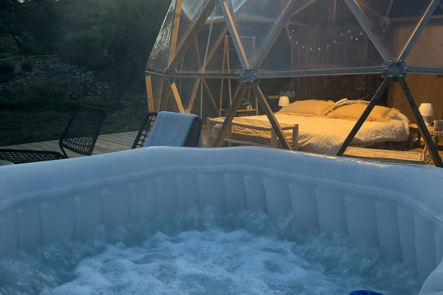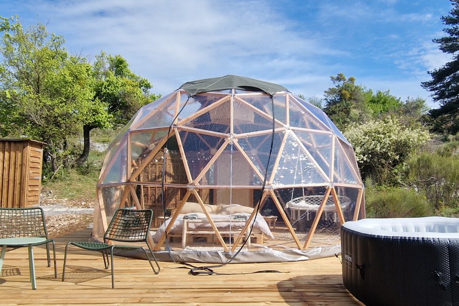 Le Dôme Etoilé se situe à seulement 45 minutes de Nice dans un cadre naturel exceptionnel sans aucun vis à vis pour un séjour paisible en connexion avec la nature.Il fait 20m2 et est transparent à 80% pour que vous profitiez de la visibilité de l’environnement et du ciel.Vous……