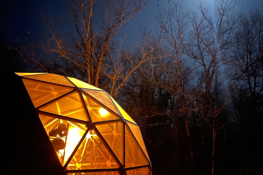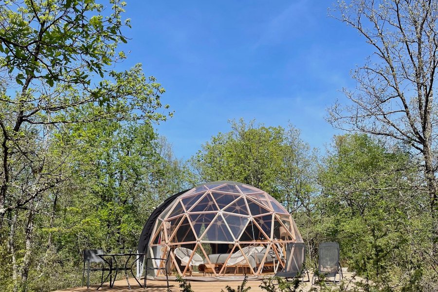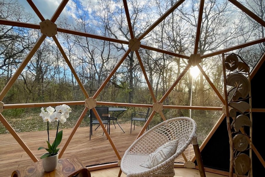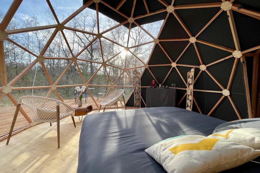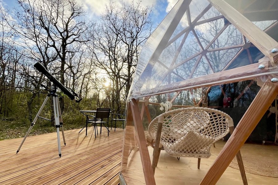 Plongez dans une expérience unique au cœur de la nature, offrez-vous une escapade envoûtante au milieu des bois où vous pourrez contempler le ciel étoilé dans une quiétude absolue. Niché dans les bois, le Dodo Dôme vous accueille dans un havre de paix de 20m2, doté d’une décoration raffin……
