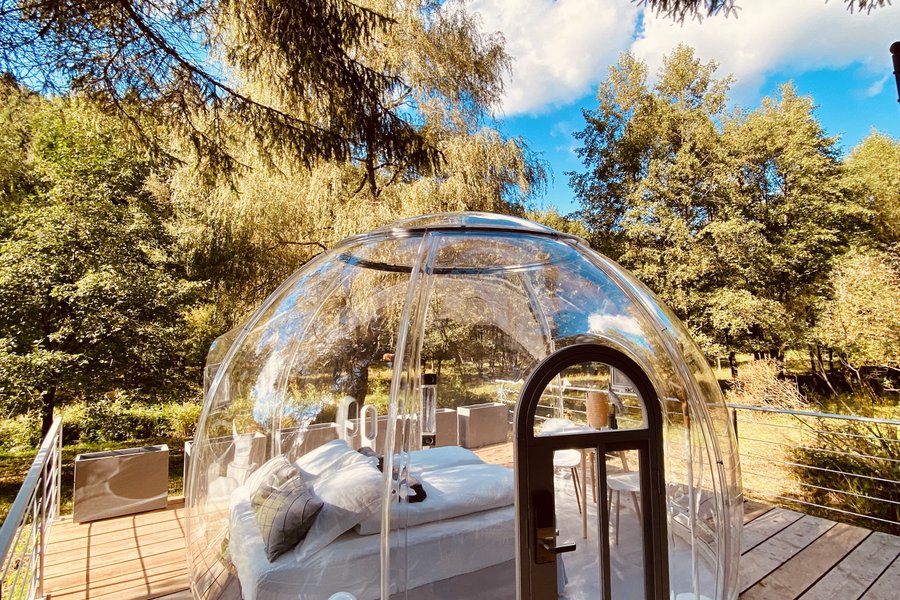 Cette impression de voyage végétal, le sentiment d’être au cœur de la vallée.Cet igloo totalement transparent, vous offre le séjour le plus immersif pour vous réveiller au cœur du Parc Régional des Vosges du Nord. Ecoutez les ……