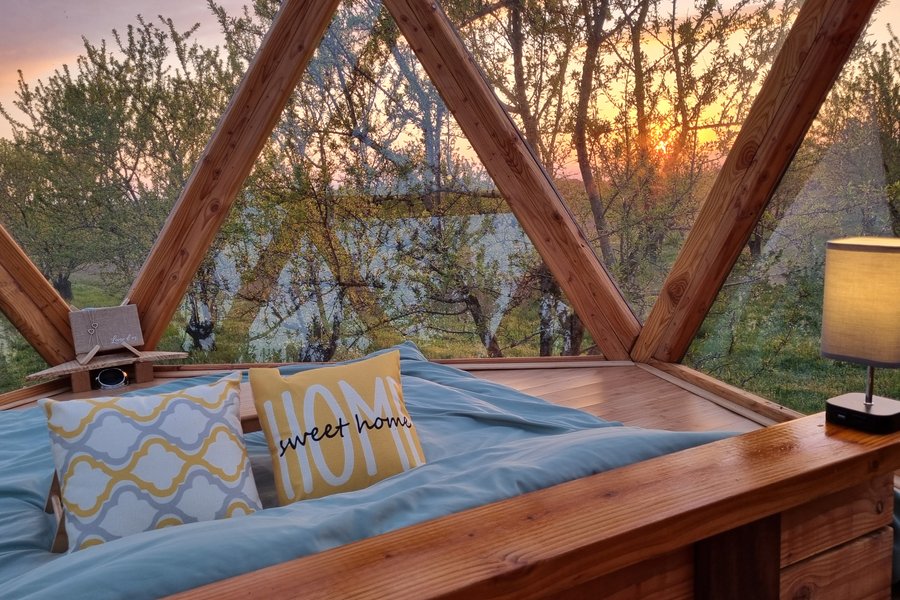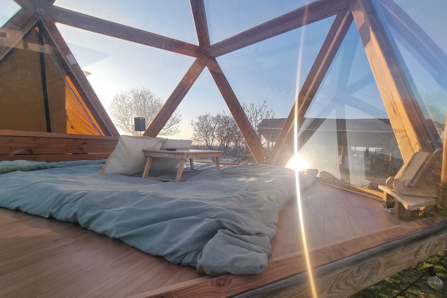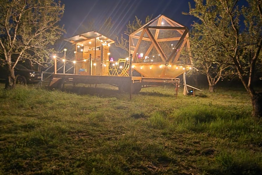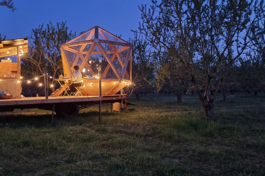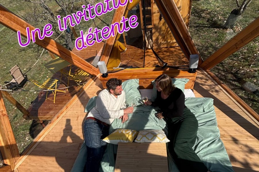 Évadez-vous dans ce dôme en bois transparent niché au cœur du domaine des Grandes Marges et se déplaçant en fonction des floraison de la nature !Terrasse privée, petite kitchenette et toilettes sèches écologiques vous attendent.La nuit tombée, installez-vous confortablement sur vot……