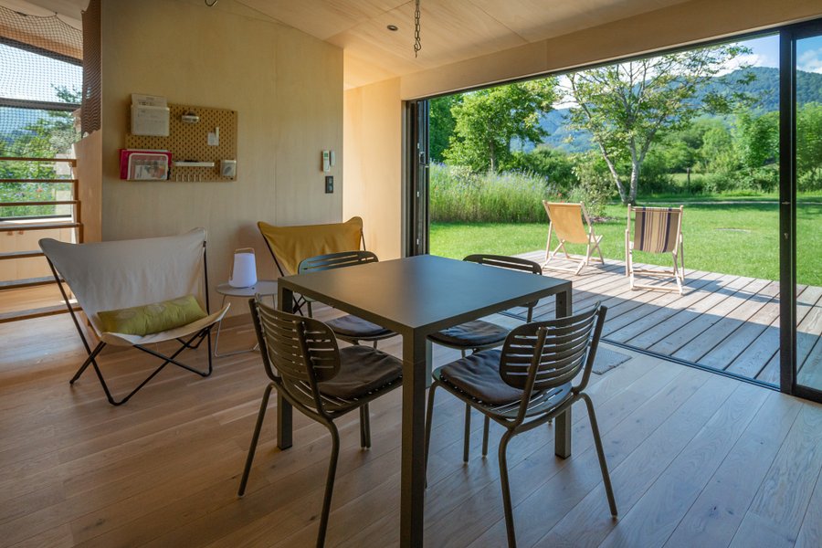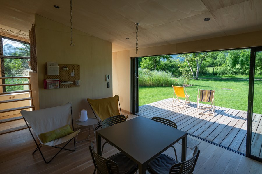 Le lodge ICI a été pensé pour que vous vous y sentiez chez vous. Il se donne un petit air scandinave avec son bois clair, ses couleurs tendres et ses formes douces.