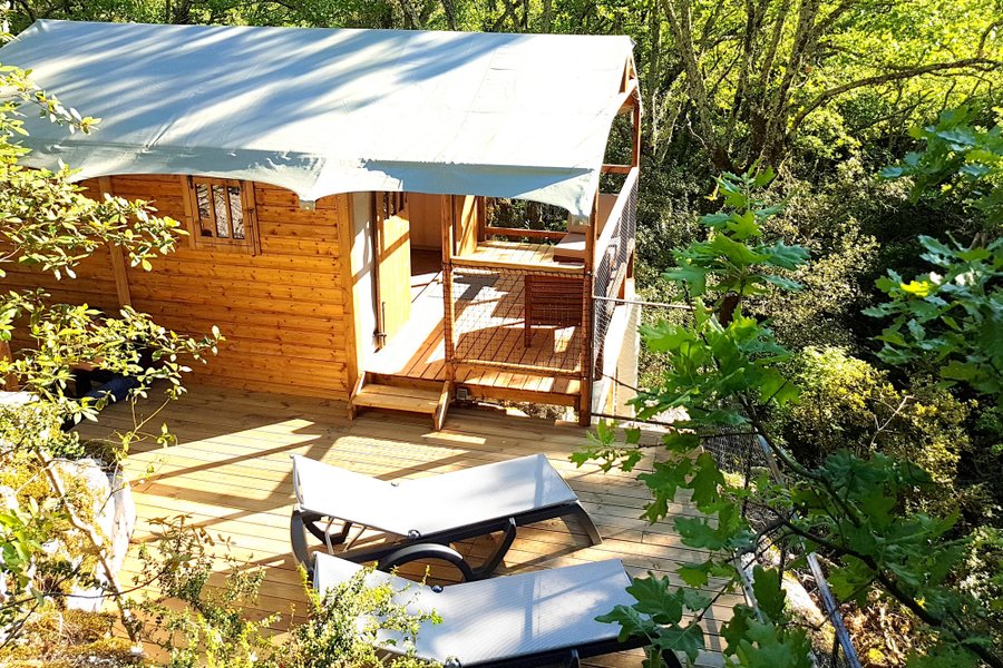 Le Lapiaz est une tente sur pilotis surplombant de magnifiques rochers sculptés par l'érosion.