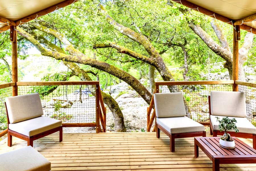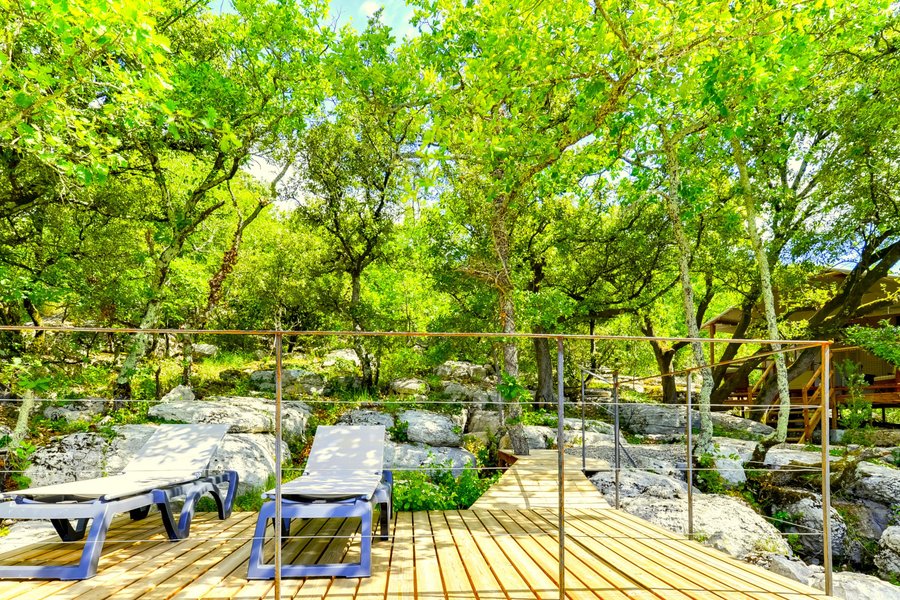 Le Lapiaz est une tente sur pilotis surplombant de magnifiques rochers sculptés par l'érosion.