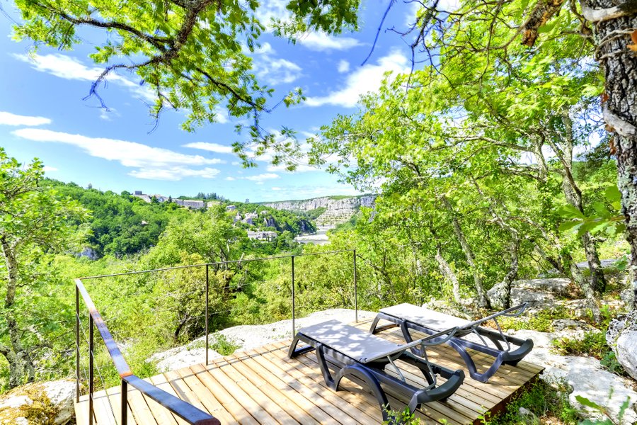 Le lodge "La Frigoule” vous offre une vue exceptionnelle sur les Gorges de l’Ardèche et ses falaises.