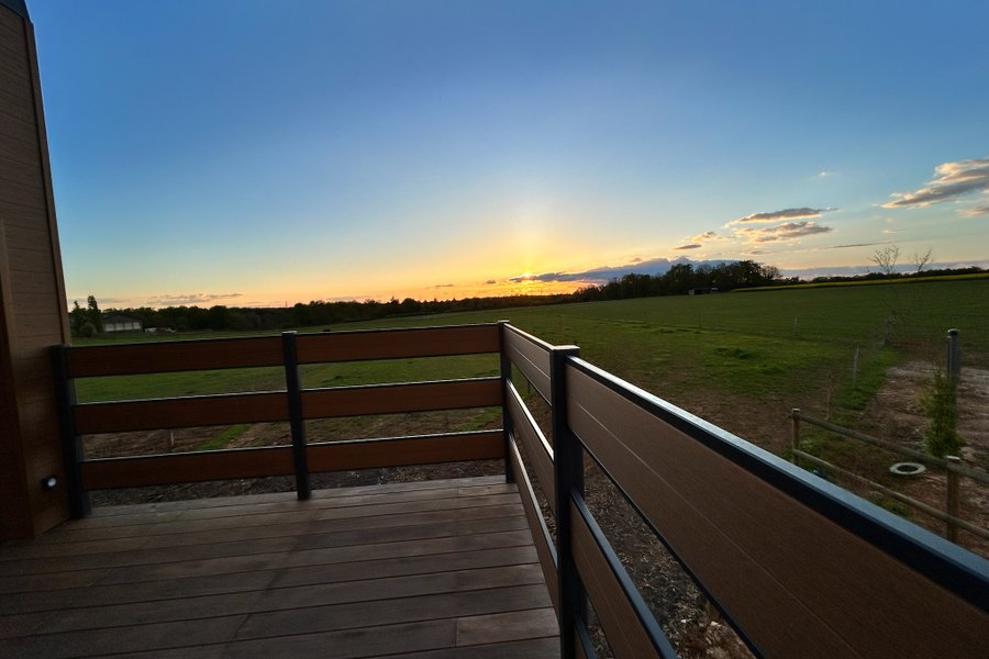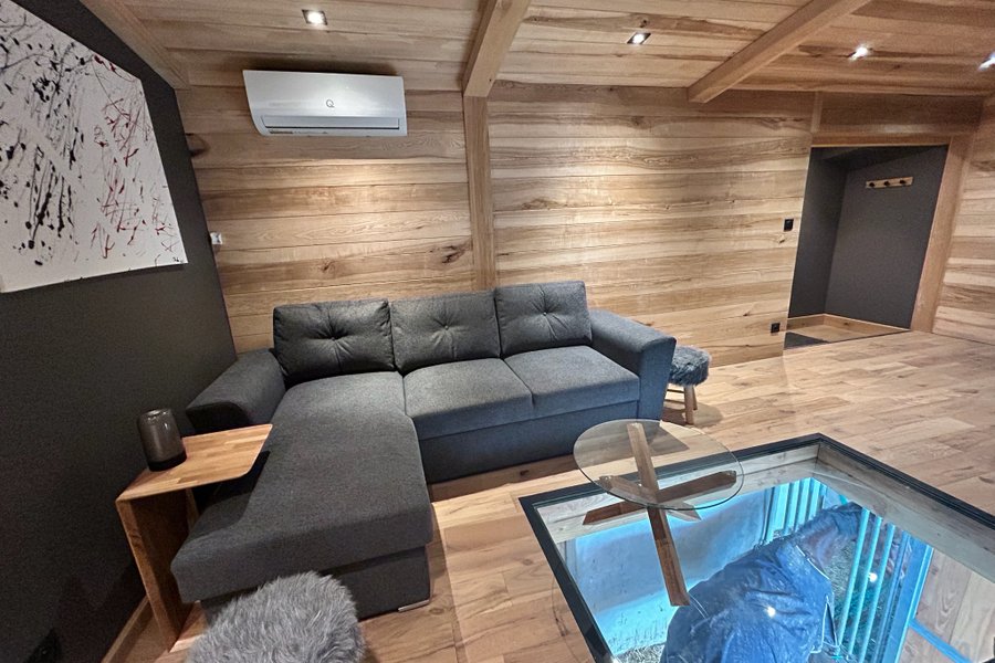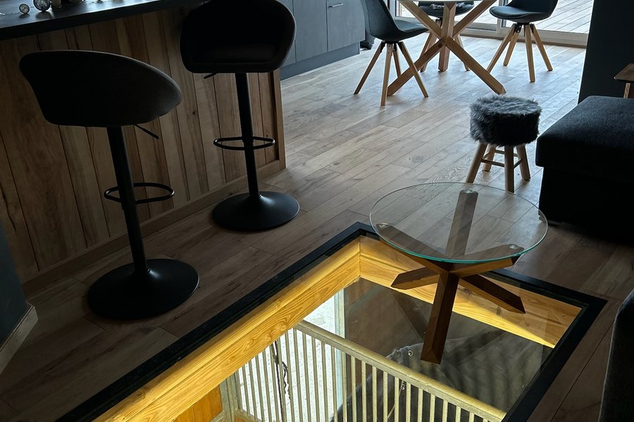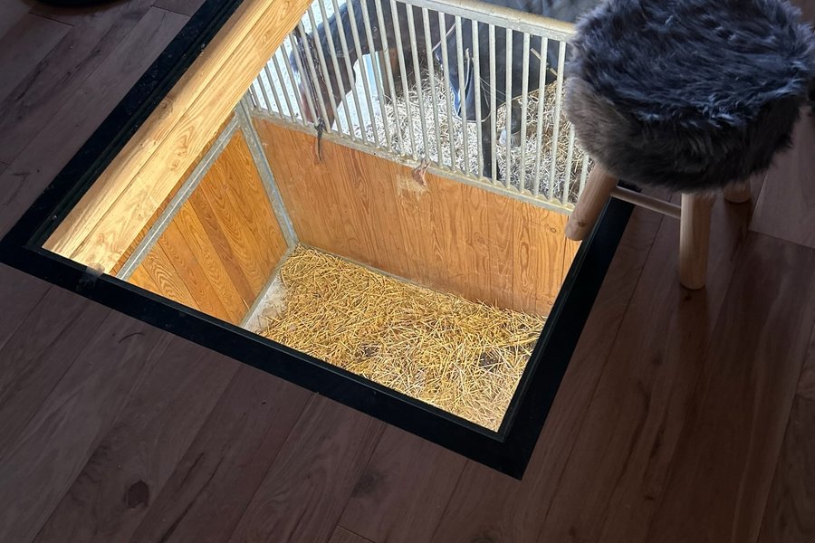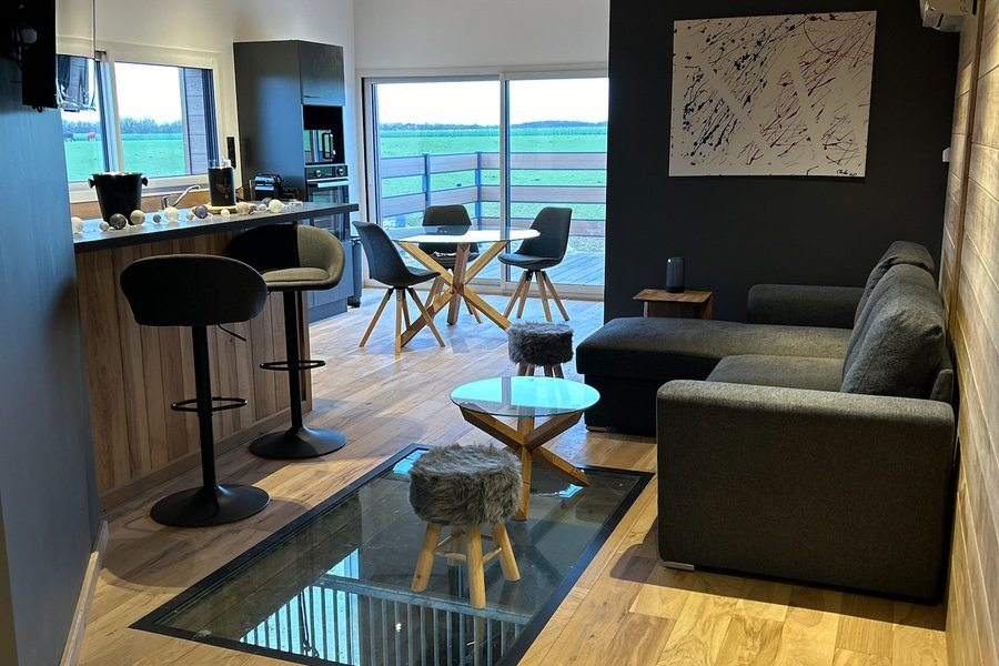 Le logement, vient d’être construit au-dessus d’une écurie où les chevaux vivent en semi liberté.Vous pourrez les observer via la baie vitrée et la terrasse qui vous est réservée, ainsi que depuis le plancher vitré situé dans le salon au dessus d’un box (c’est surprenant et vertigineux)….