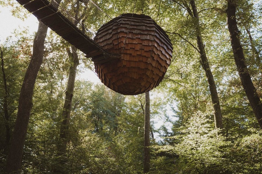 Perchée à 6 mètres de hauteur, la Cabane Lov'Nid Passion est idéale pour vivre une escapade romantique.