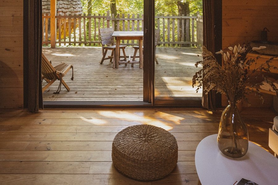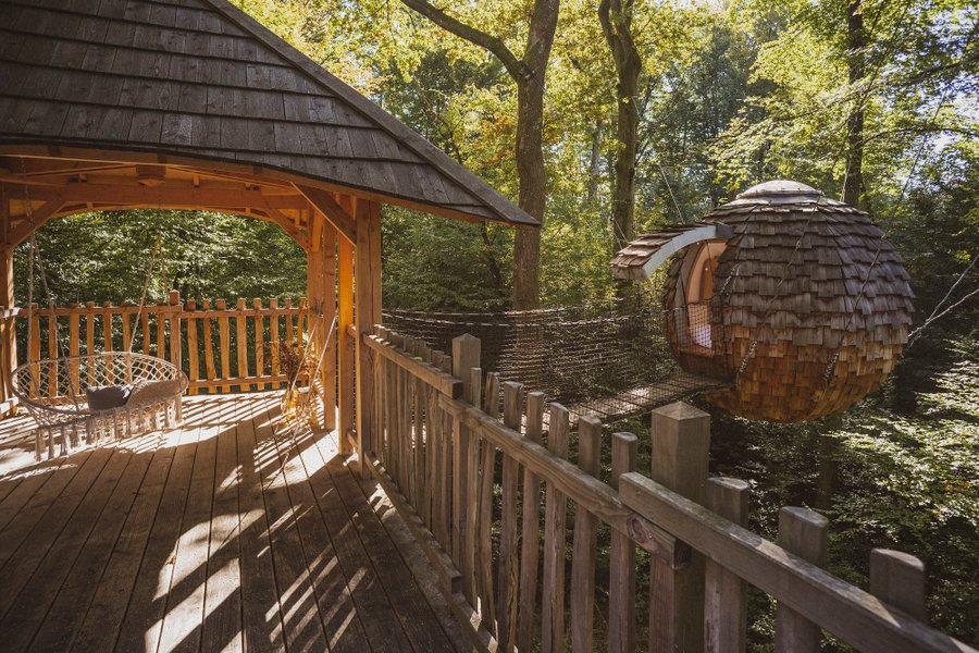 Pour partager un moment unique à deux, la Cabane Spa Echo est idéale ! Ce cocon dans les arbres est accessible par un double escalier.