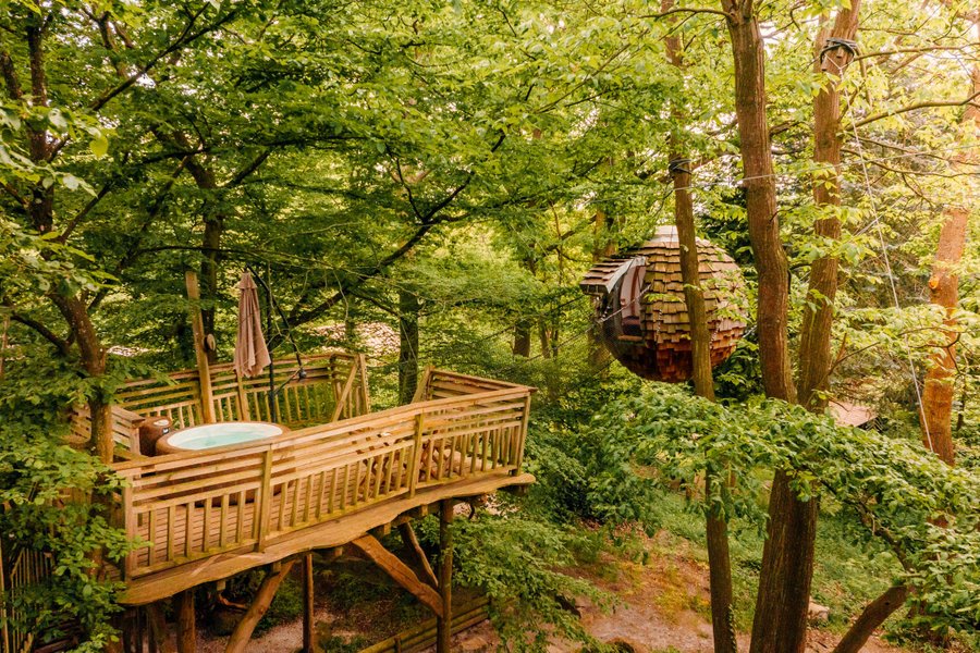 Envie d'un break pour vous ressourcer ? Connectez-vous à la nature dans votre Cabane Spa suspendue à 5 mètres en haut dans les arbres ! Votre cabane, véritable nid douillet rond comme un cocon, vous offre un moment de pure bien-être : jacuzzi privé au milieu des arbres et réveil avec le chant de….