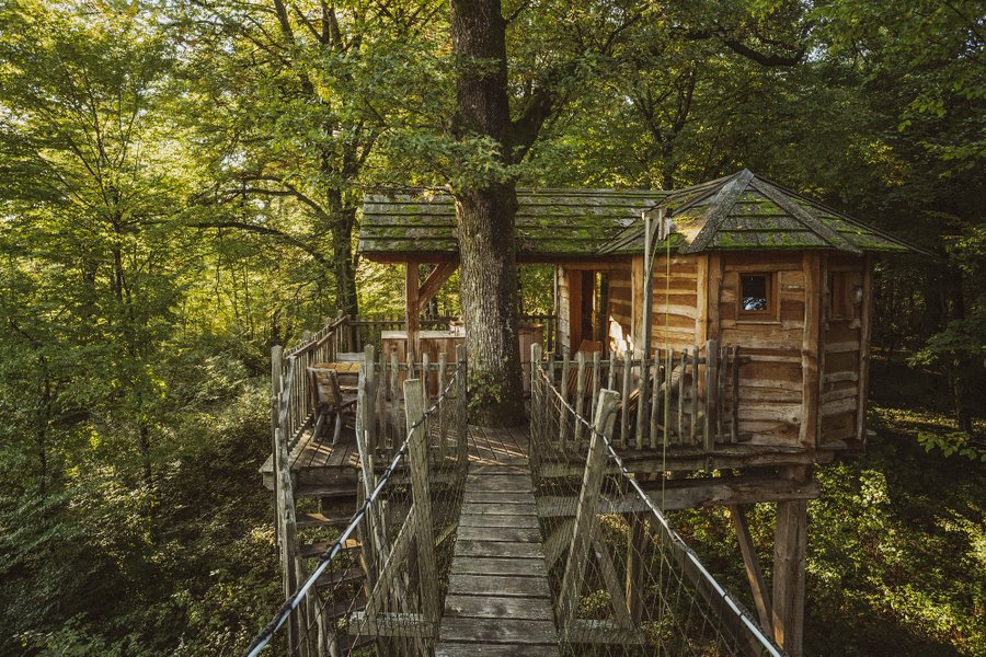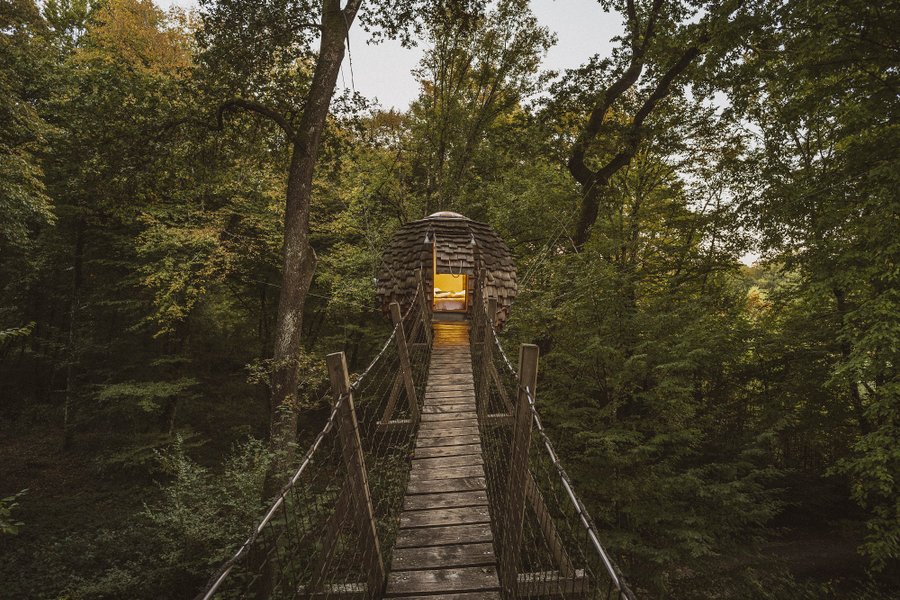 Perchée à 6 mètres de hauteur, la Cabane Lov'Nid Passion est idéale pour vivre une escapade romantique.