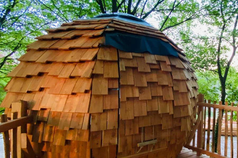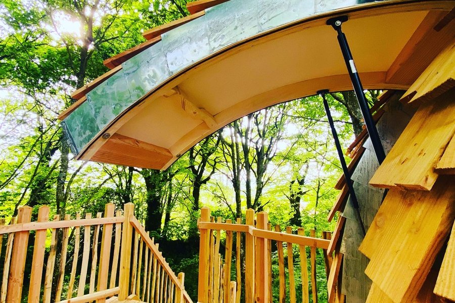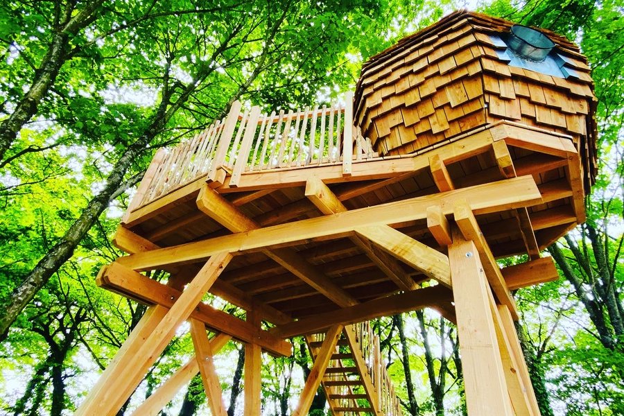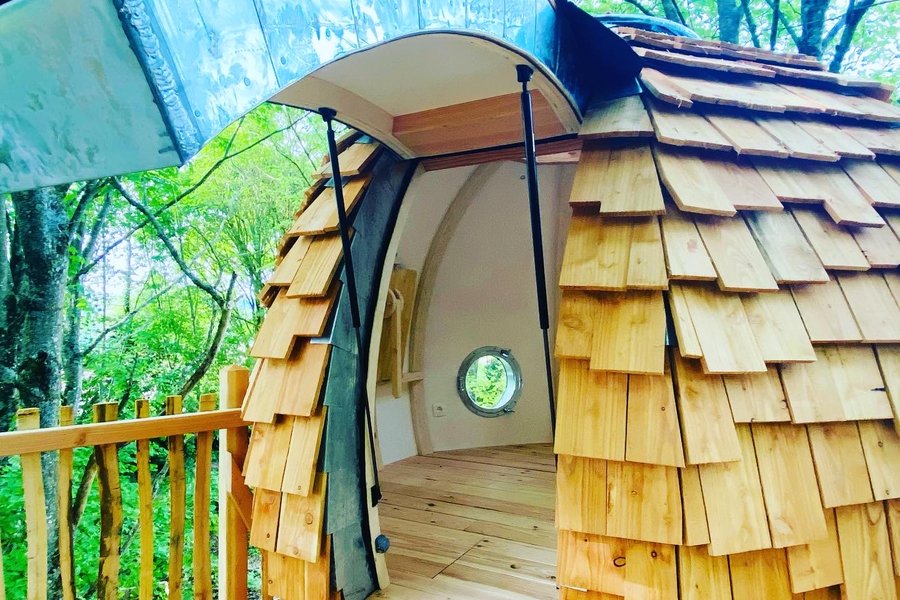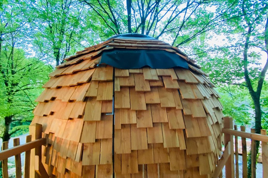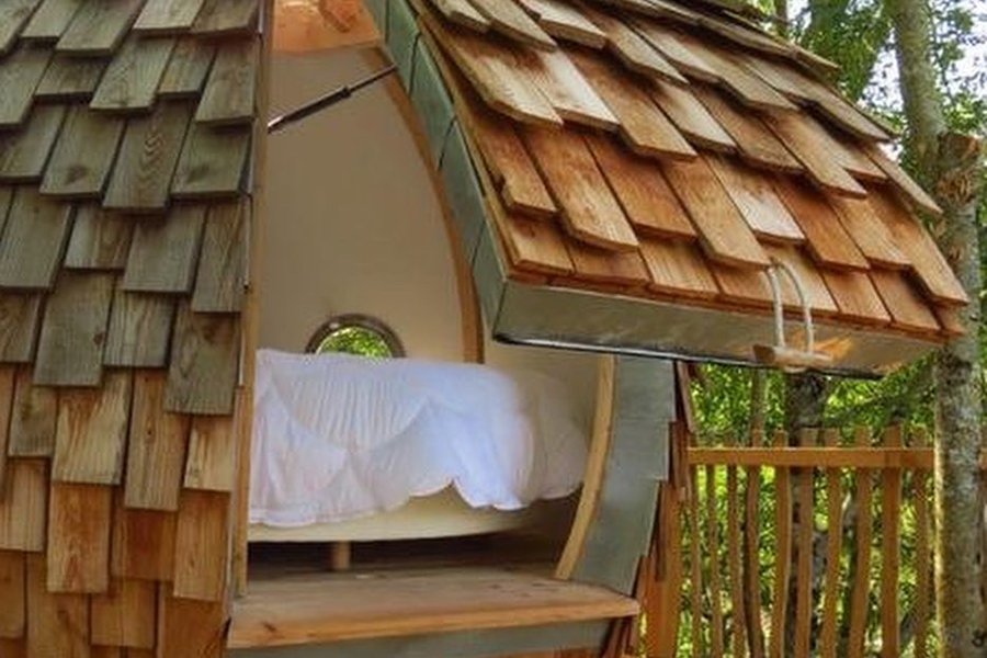 Perché à plus de 4m de hauteur, au cœur des arbres, ce cabanon tout en rondeur est proposé aux couples audacieux. Vous avez envie d’une parenthèse un petit peu décoiffante et d’une nuit hyper romantique dans un grand lit rond sous les étoiles ? Cet espace est fait pour vous !Après avoir m……