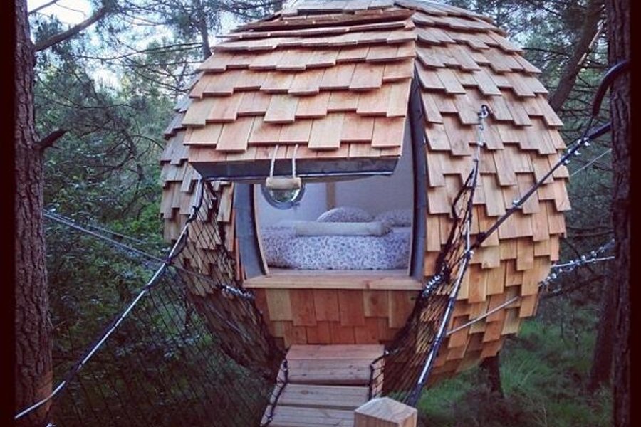Le nom de la cabane dans les arbres Folenn signifie « la feuille » en breton.