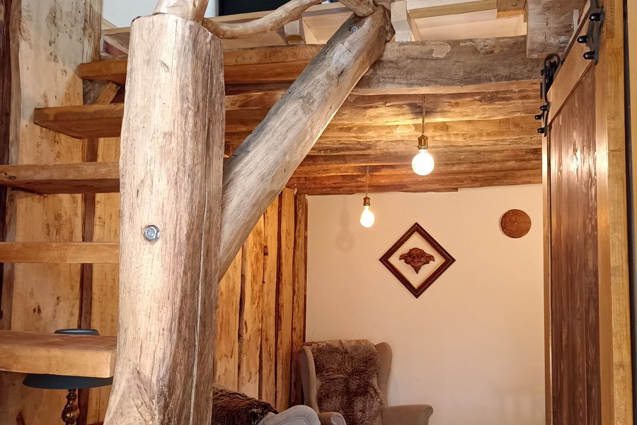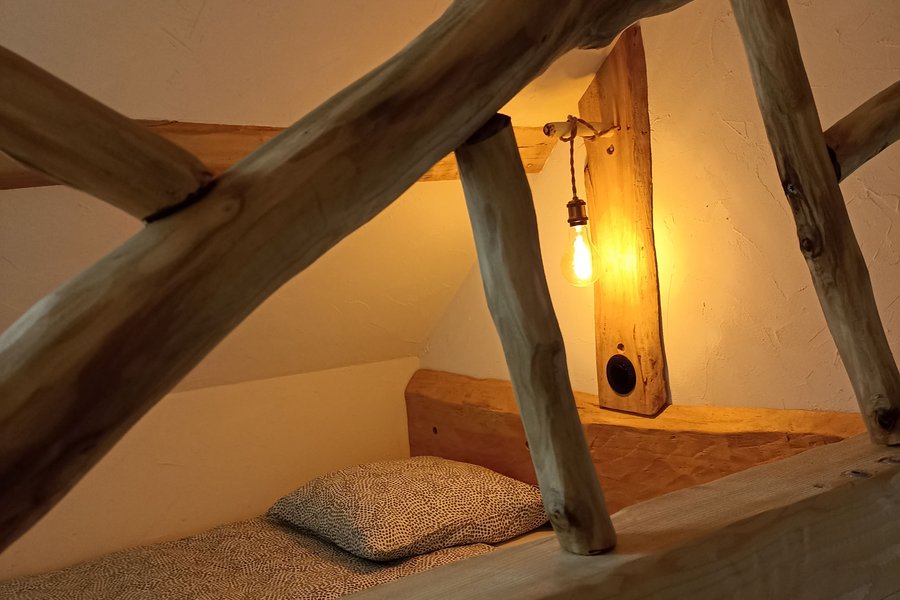 La Cabiotte est une charmante petite maison conçue, rénovée et aménagée pour vous plonger dans l’univers des cabanes. Les matières naturelles (bois, pierre) et son ambiance chaleureuse et cosy vous transportent au pays des fouletots du territoire Jurassien.La chambre se trouve à l’étage, ……