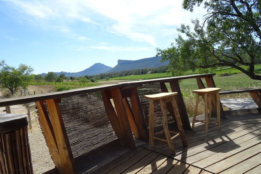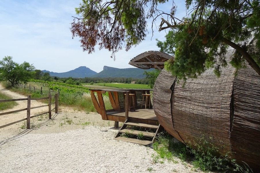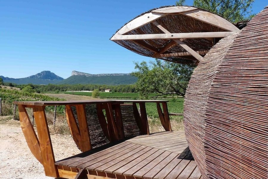 Entre vignes et garrigue, avec une vue imprenable sur les reliefs du Pic Saint Loup et de l’Hortus, ce nid est idéal pour un séjour insolite à deux.