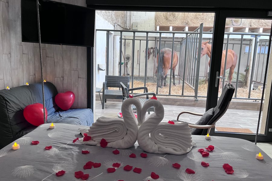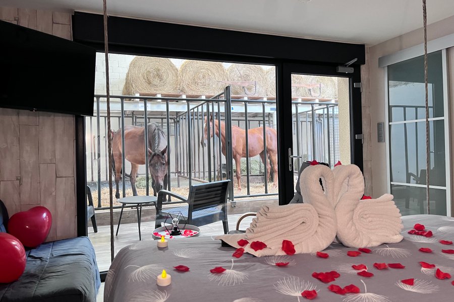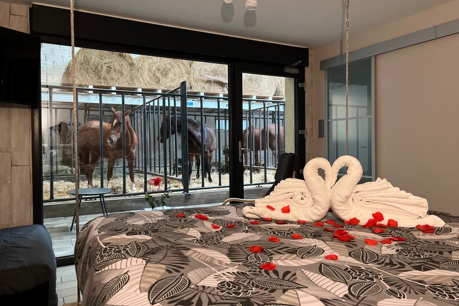 ❤️ Offrez-vous une pause enchantée dans un lodge niché à la lisière des Vosges, où les poneys et les chevaux sont vos plus proches voisins.Observez depuis votre terrasse les chevaux et poneys qui vont venir vous saluer.Votre hébergement allie charme et confort : lit suspendu en 160……