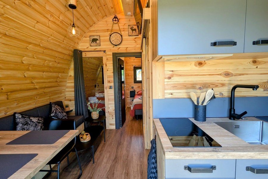 Le Pod « ÉLAN », construit en bois aux lignes arrondies, mêle l’élégance nordique à une atmosphère cosy et naturelle. Conçu pour accueillir jusqu’à 3 personnes (2 adultes e……