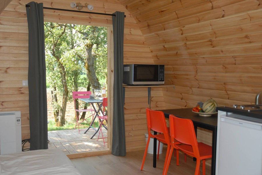 Le Pod de l'Adret est une jolie cabane en bois, situé au milieu des chênes.