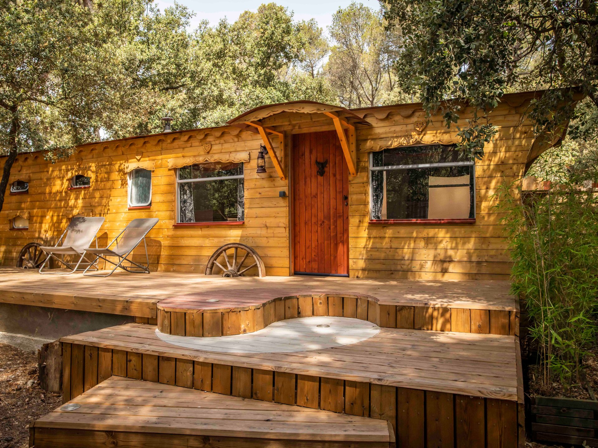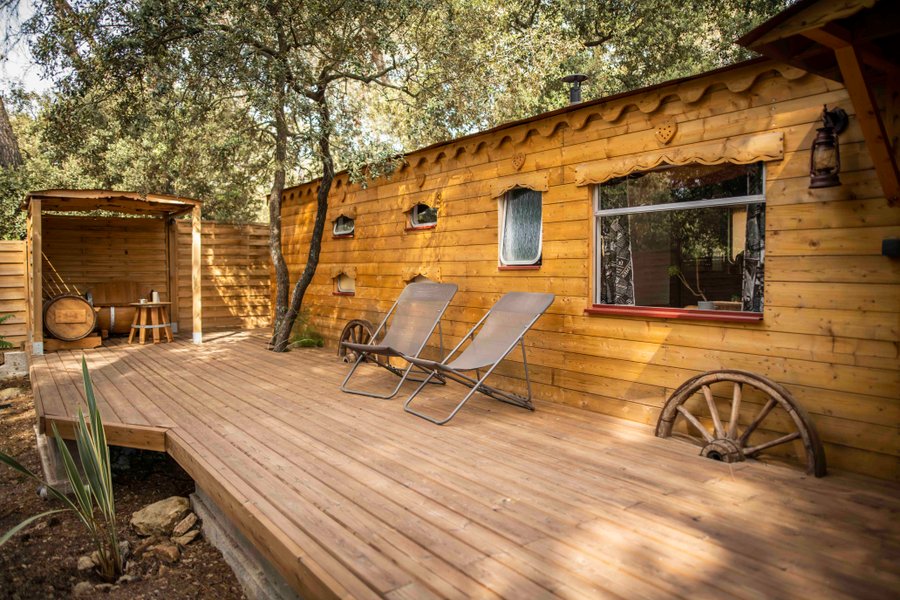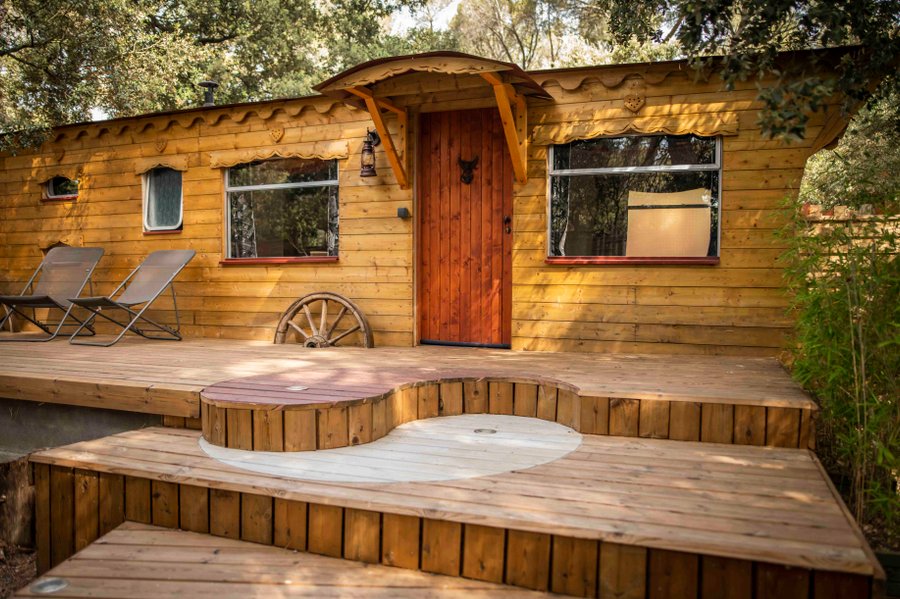 Découvrez cette jolie et très spacieuse Roulotte située au cœur de la Provence.Interlude conjugue luxe et romantisme. Votre hébergement insolite est composé, d’un salon très confortable, d’une cuisine équipée : réfrigérateur, four multifonctions (cuisson, grill et mi……