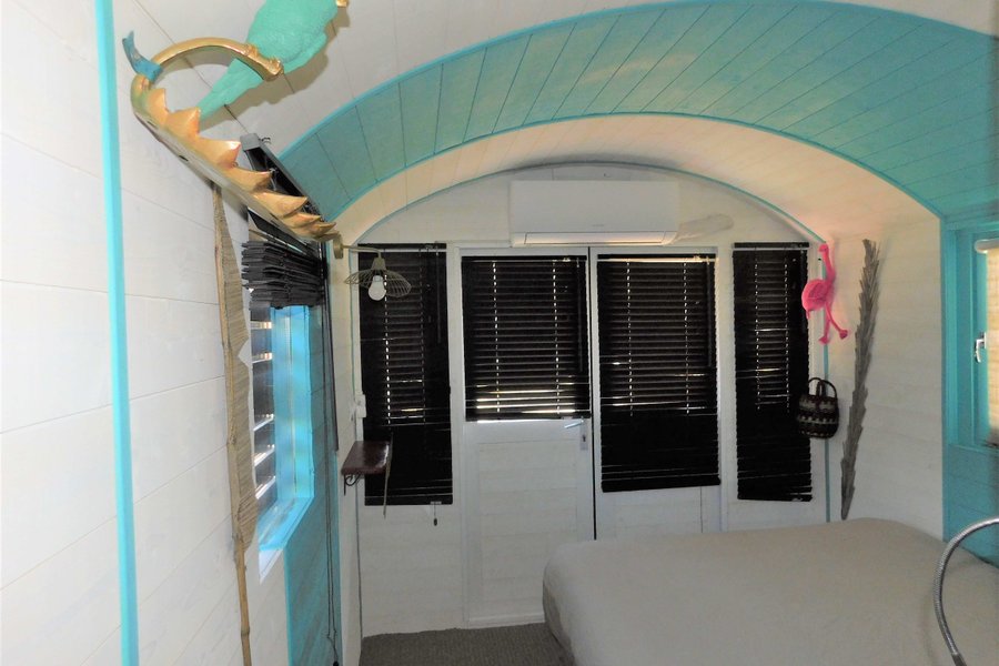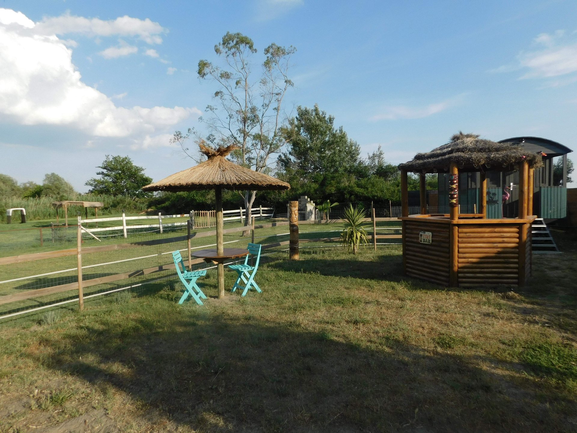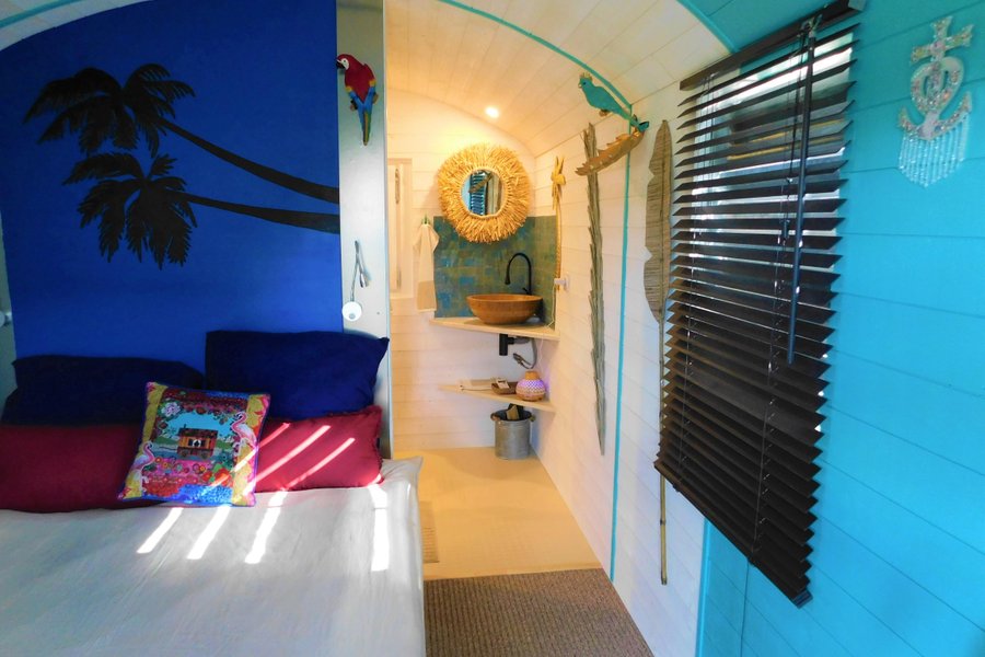 La roulotte Pura Vida est située dans une Ferme lounge de 7000m² avec des alpagas.Avec un décor exotique inspiré du Pacifique et de la Camargue, cette roulotte confortable, prévue pour deux personnes, vous invite à passer un séjour de dépaysement et de détente.Elle……