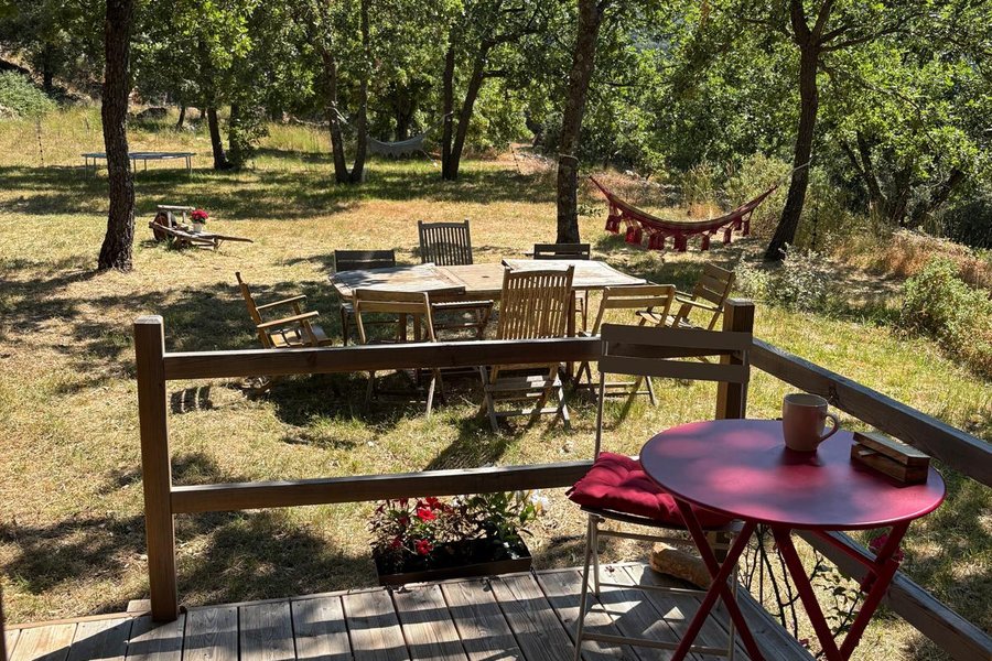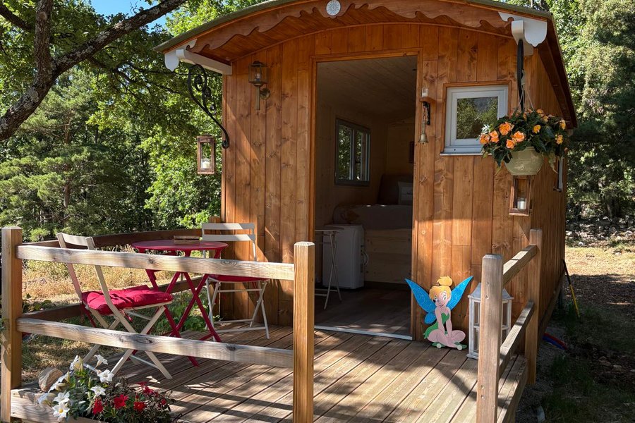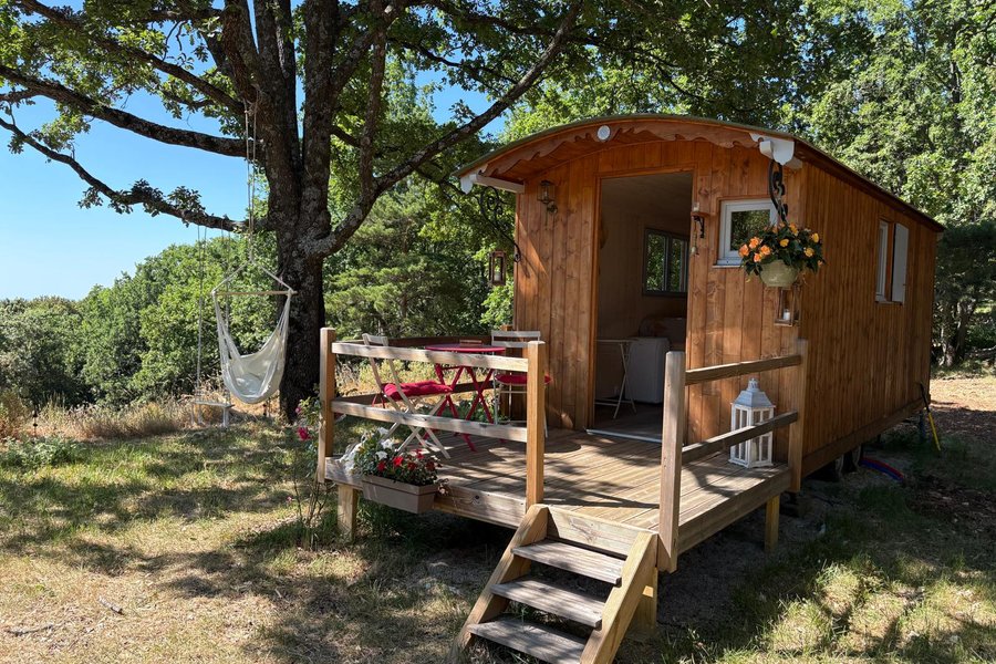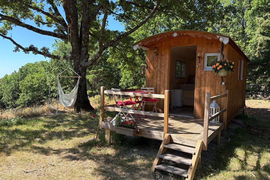 Séjour en roulotte insolite avec spa et nature préservéePerchée à 839 mètres d’altitude, cette roulotte insolite vous accueille au cœur d’un domaine de 11 hectares de chênes et de pins. Un véritable cocon en pleine nature, idéal pour une escapade originale et ressourçante……