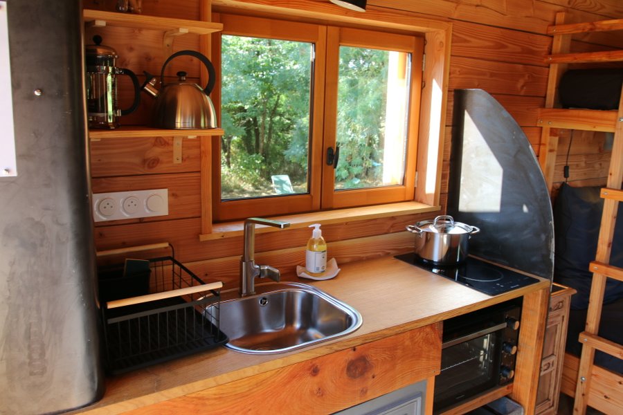 Située au cœur d’une ferme en maraîchage biologique, mais avec sa propre entrée indépendante, cette grande roulotte écologique peut accueillir jusqu’à 4 personnes. Elle est idéale pour un séjour en couple ou en famille, entre confort et immersion nature.