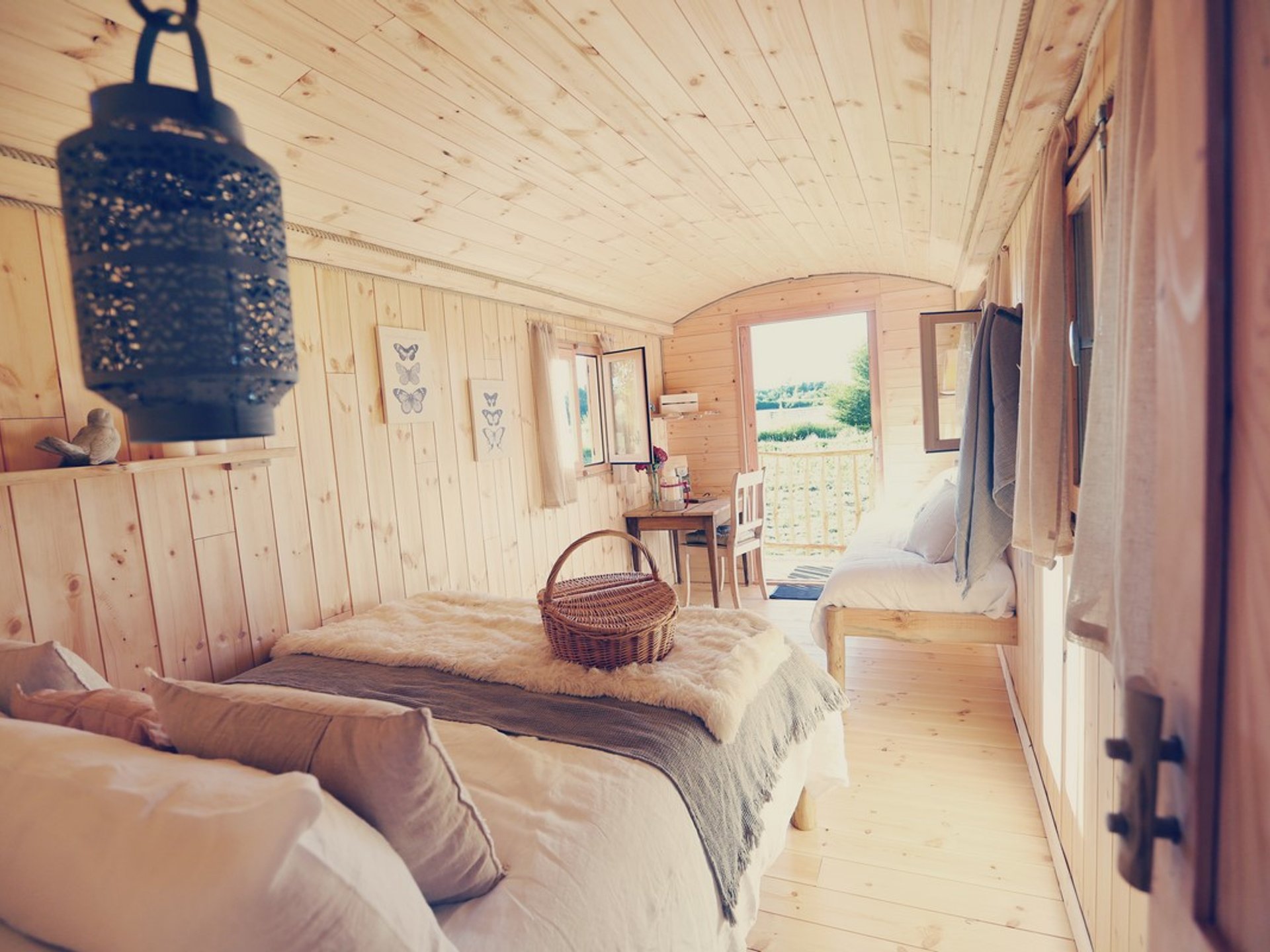 Découvrez la vie en roulotte le temps d’un week-end inoubliable. Construite en pin, cette roulotte orientée plein sud vous fera profiter d’un magnifique coucher de soleil. Grâce à sa terrasse, vous pourrez y contempler la grande diversité de flore et de faune comme des canards, poules d’eau, lap……