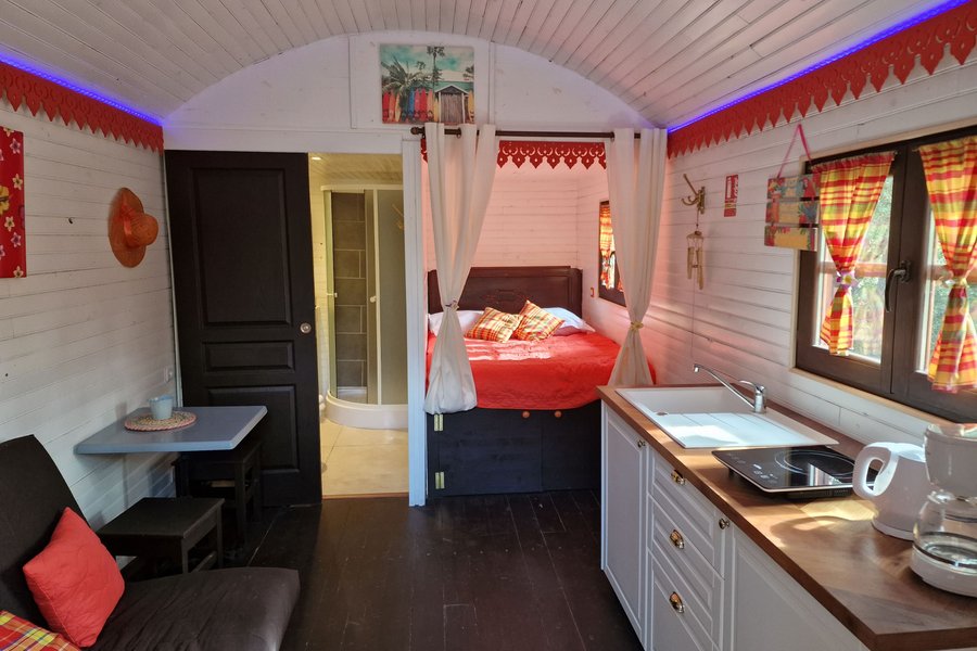 La roulotte vous garantit un séjour inoubliable en amoureux au cœur d’une ambiance chaleureuse et romantique.