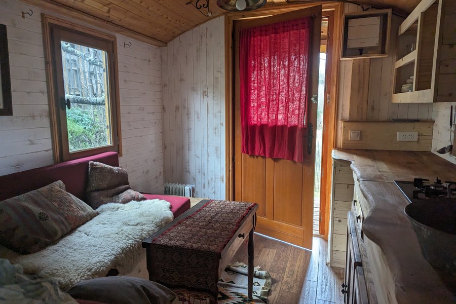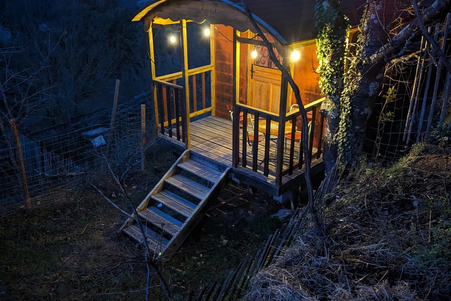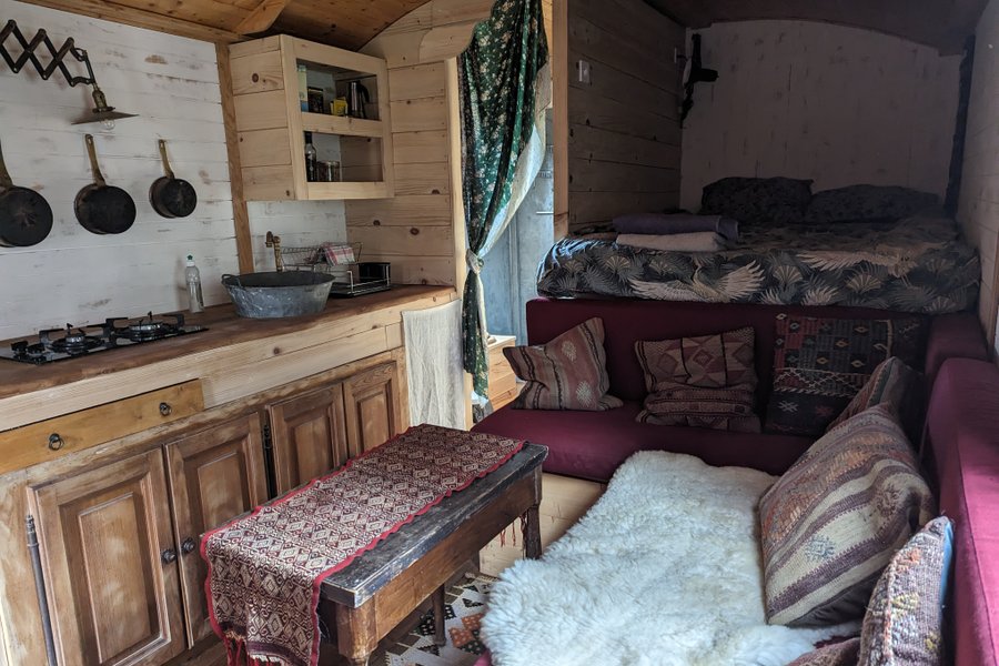 Impossible d’oublier l’expérience inédite de cette destination à la campagne. Cette roulotte vous offre un cadre idyllique pour un week-end en amoureux ou en famille.Entièrement aménagée et construite avec soin, elle saura vous charmer. Un aménagement travaillé uniquement dans la c……