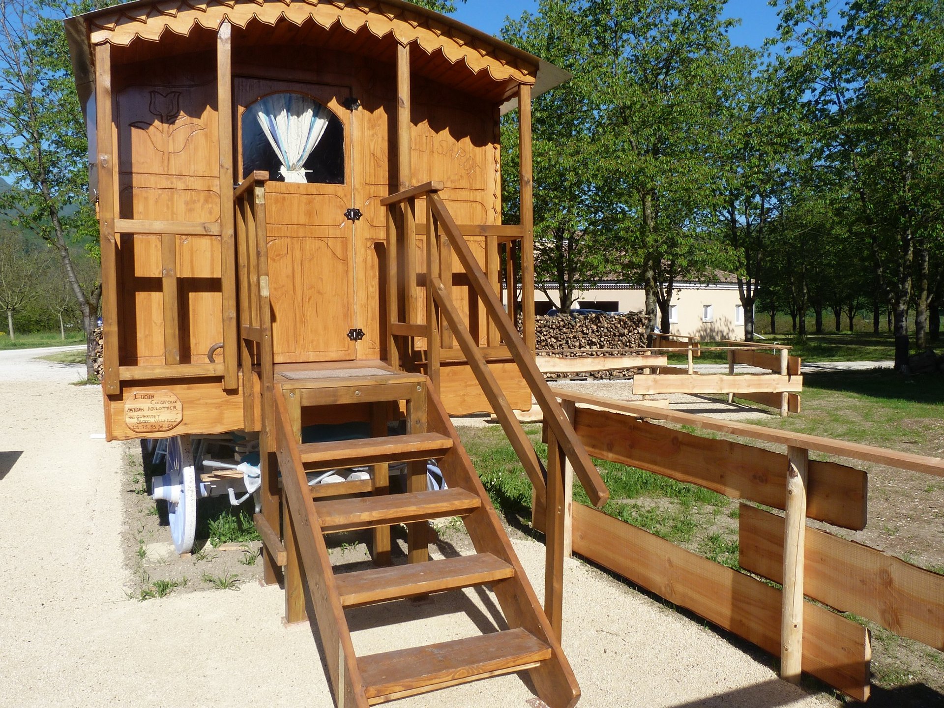 Cette jolie roulotte située dans le Royan-Vercors, offrira un séjour idyllique aux amoureux de la nature.