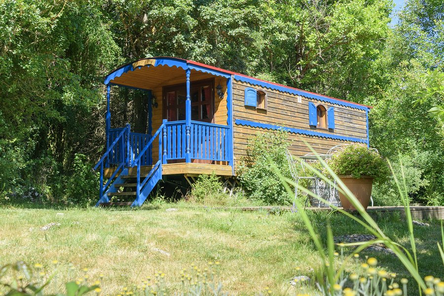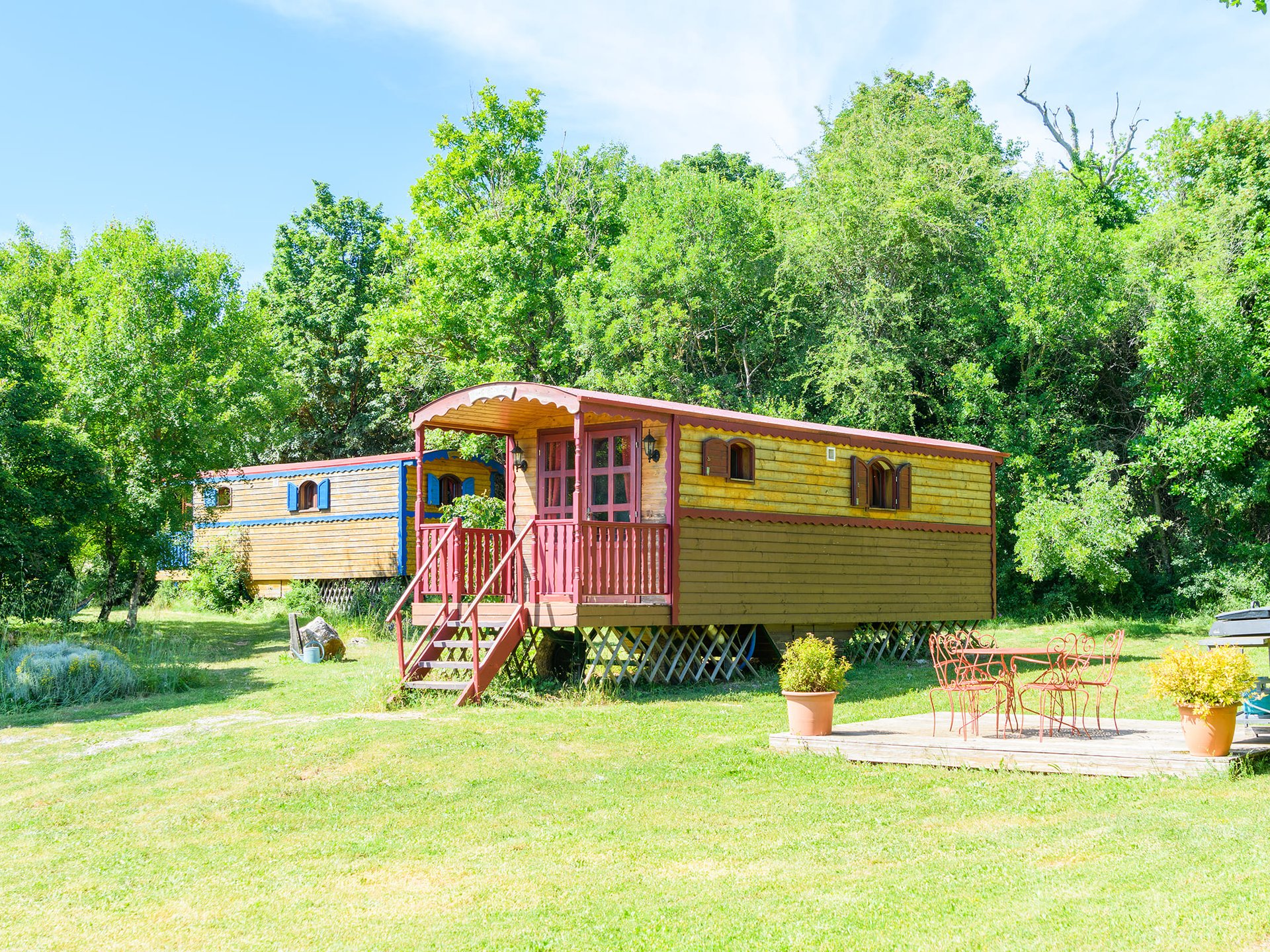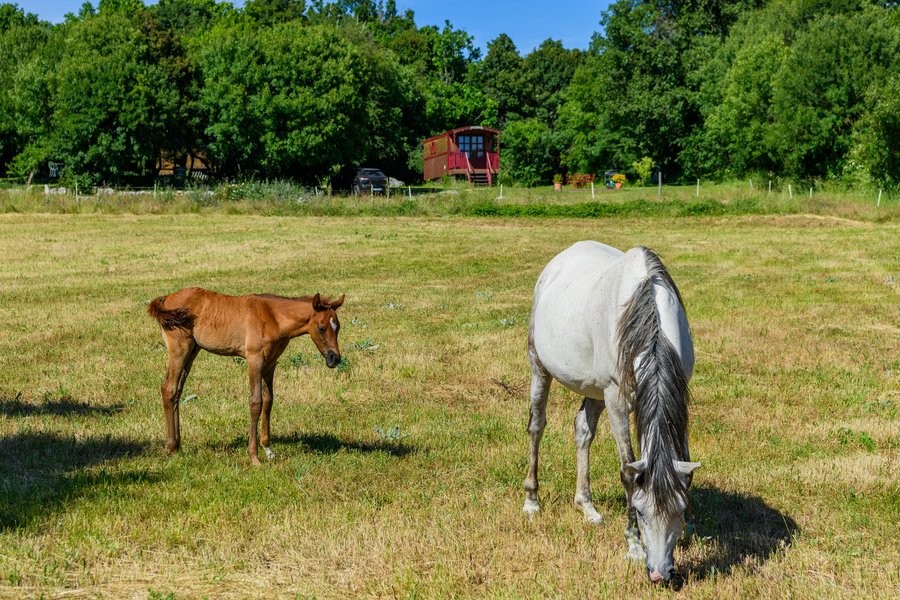 Au cœur du domaine équestre du Quintanel, deux roulottes en bois vous attendent, posées en pleine……