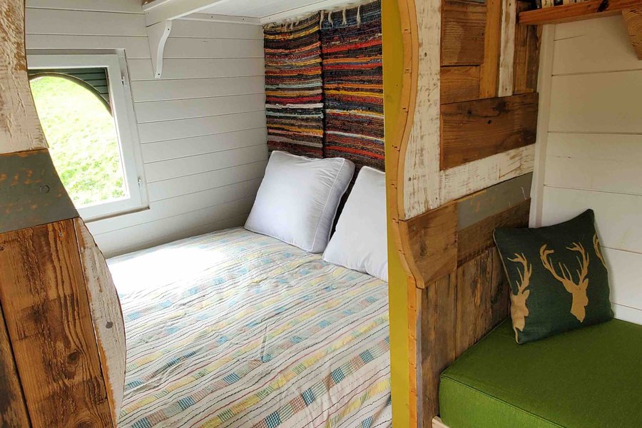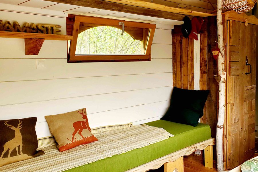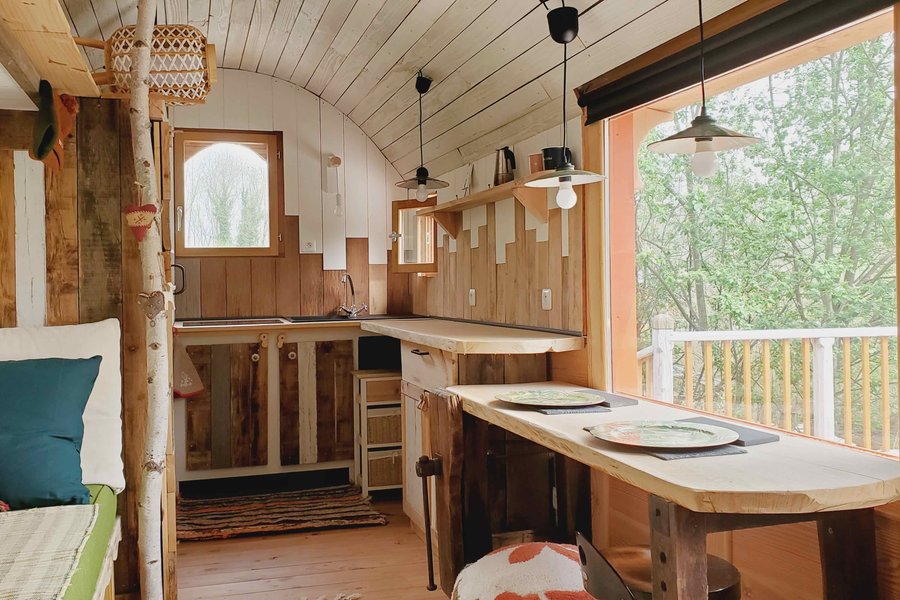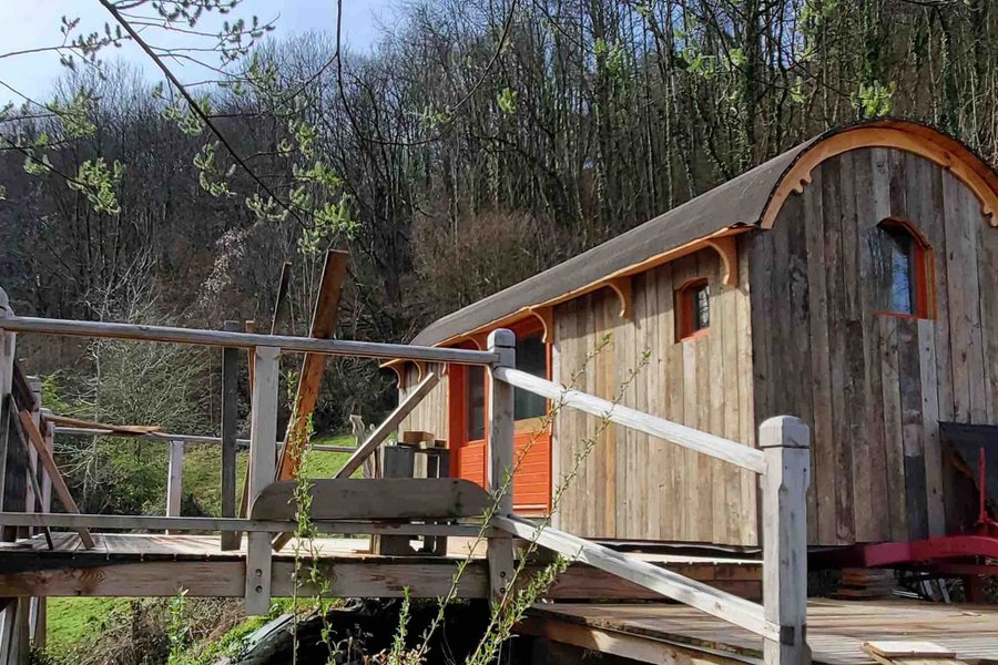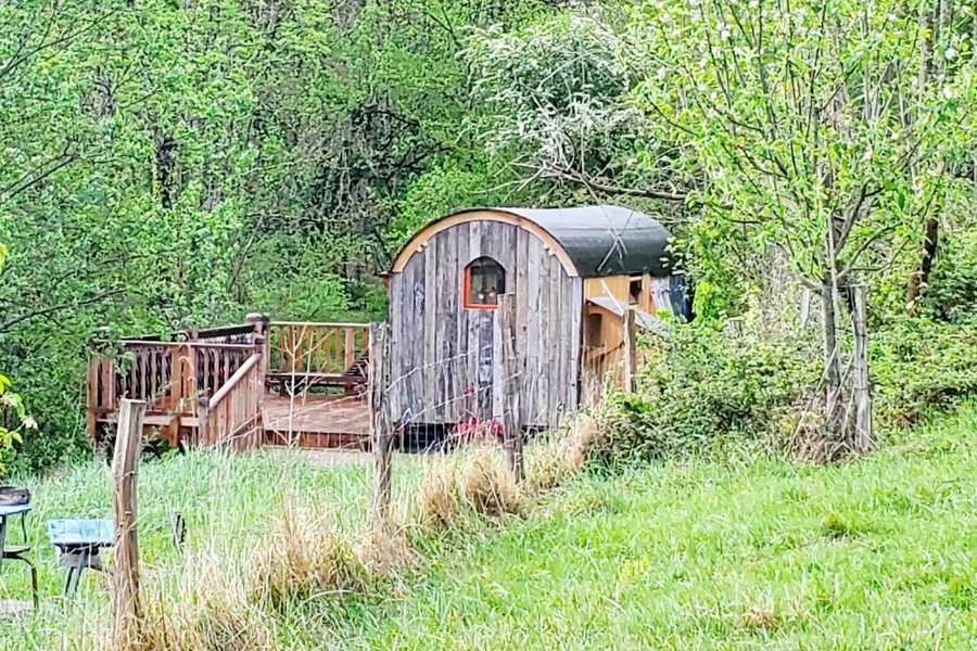 Située en bordure d'un chemin et à l'écart, au milieu d'une clairière boisée, l'emplacement de cette jolie roulotte offre une expérience exceptionnelle de calme et de sérénité, parfaite pour se ressourcer dans ce petit nid douillet et atypique.