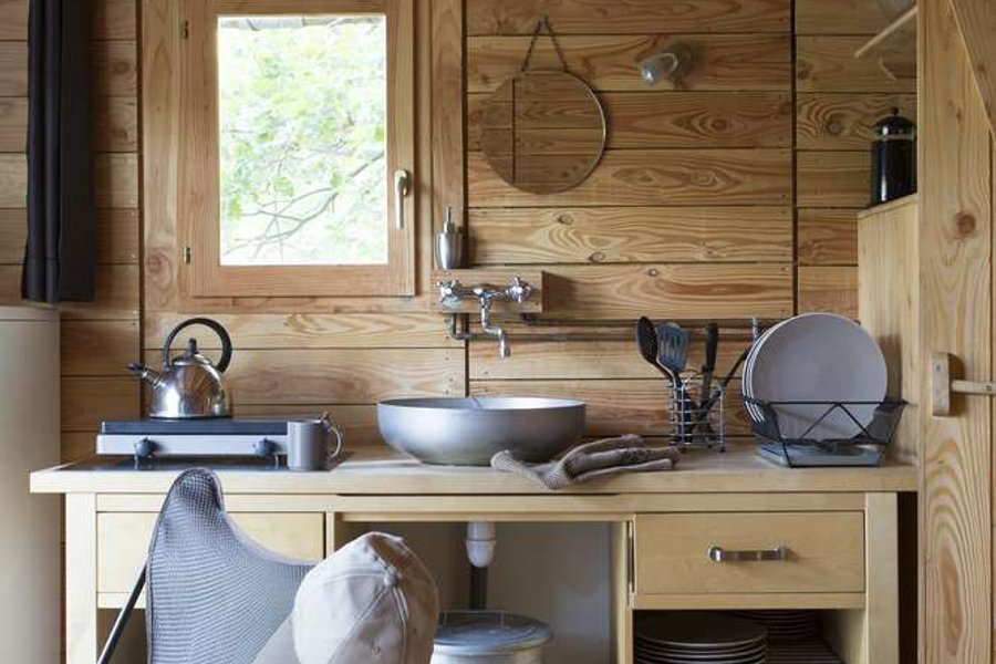 La Cahutte vous permettra de séjourner dans une cabane en bois tout confort au rez-de-chaussé en ayant le plaisir de dormir dans une tente à l’étage.
