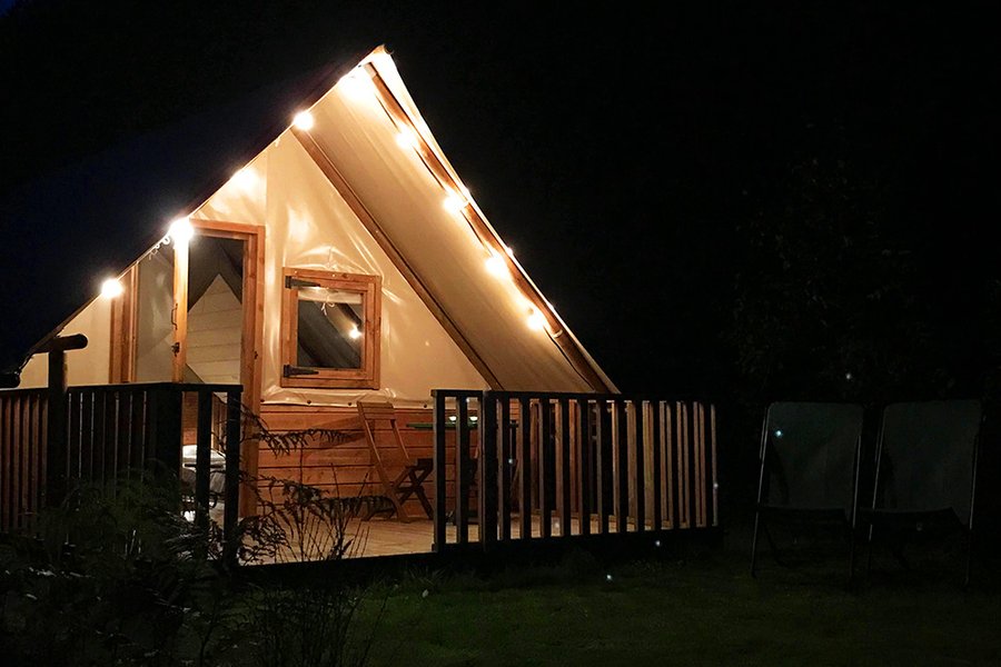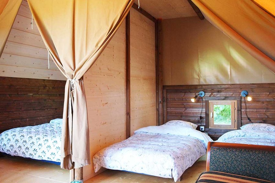 La tente Thym est une tente lodge toilée avec finition en bois, située au fond de notre jardin. Ce logement prévu pour 4 personnes a été conçu pour découvrir et apprécier la nature et les grands espaces en famille ou entre amis.Elle est composé de deux espaces couchage, un composé d’un li……