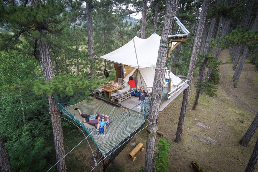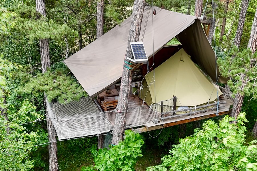 Une tente perchée entre ciel et forêt, inspirée des grands espaces