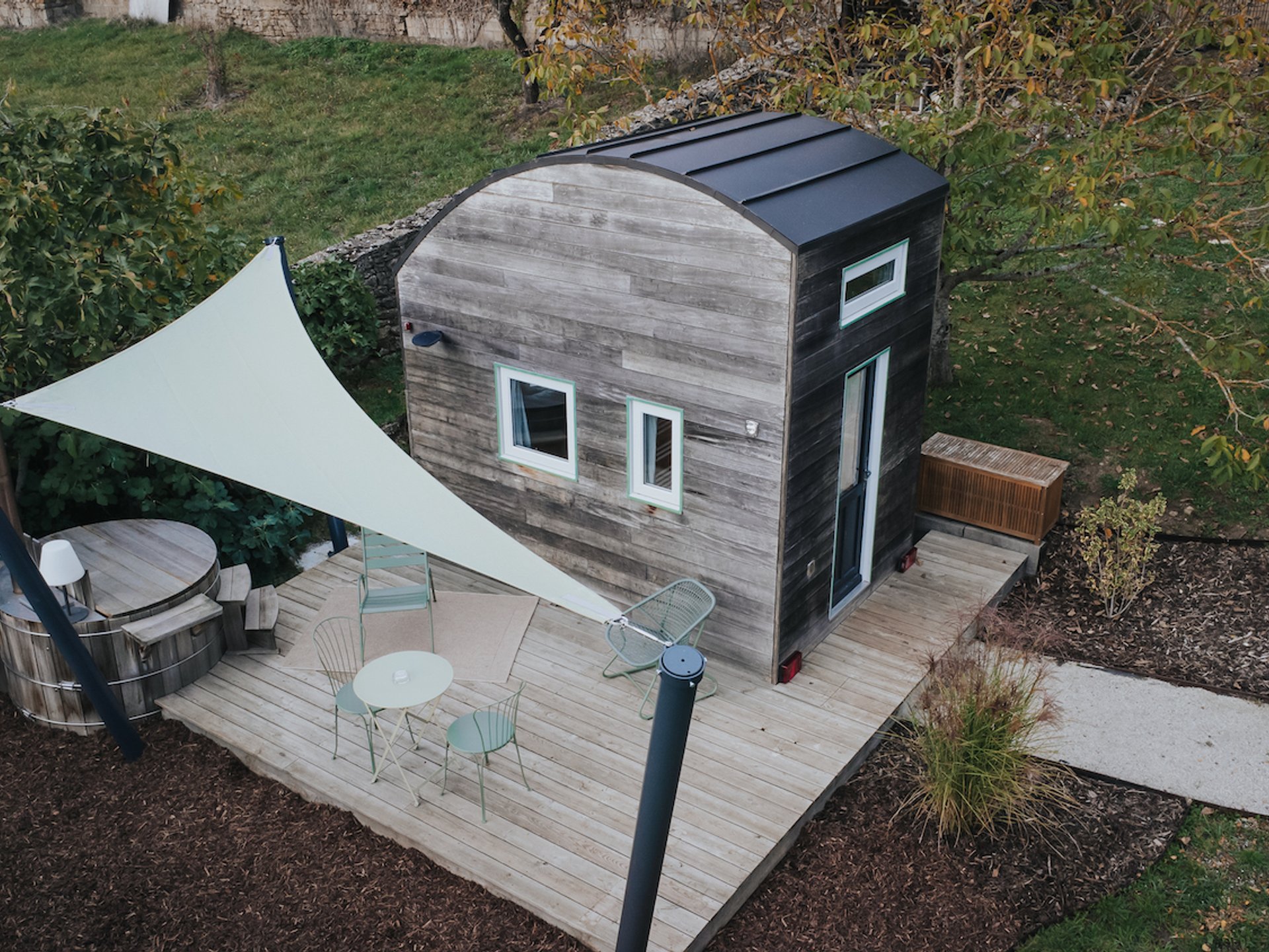 La Cabotte Verte est la tiny house du domaine les Cabottes, la plus proche de la nature.