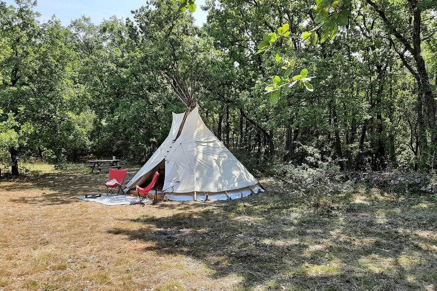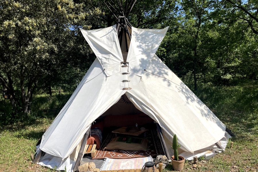 Le tipi Naskapi peut accueillir 3 personnes ; il est équipé de 3 lits simples disposés en U comme le faisait la tribu Amérindienne Cree ! Equipé d'un coin repas et d'un petit braséro, il est idéalement placé pour recréer le mode de vie de cette tribu .