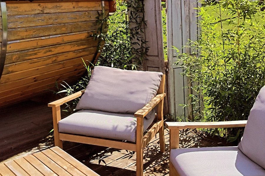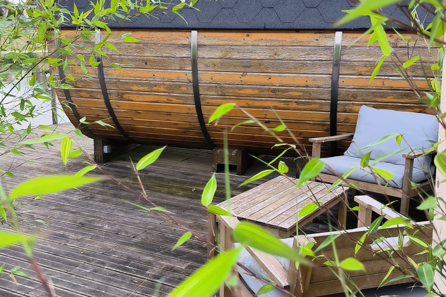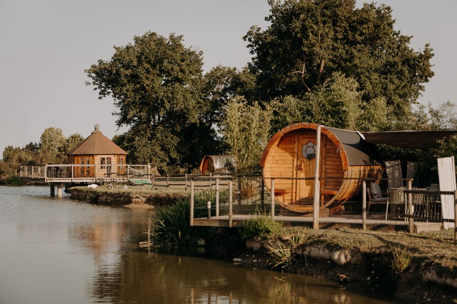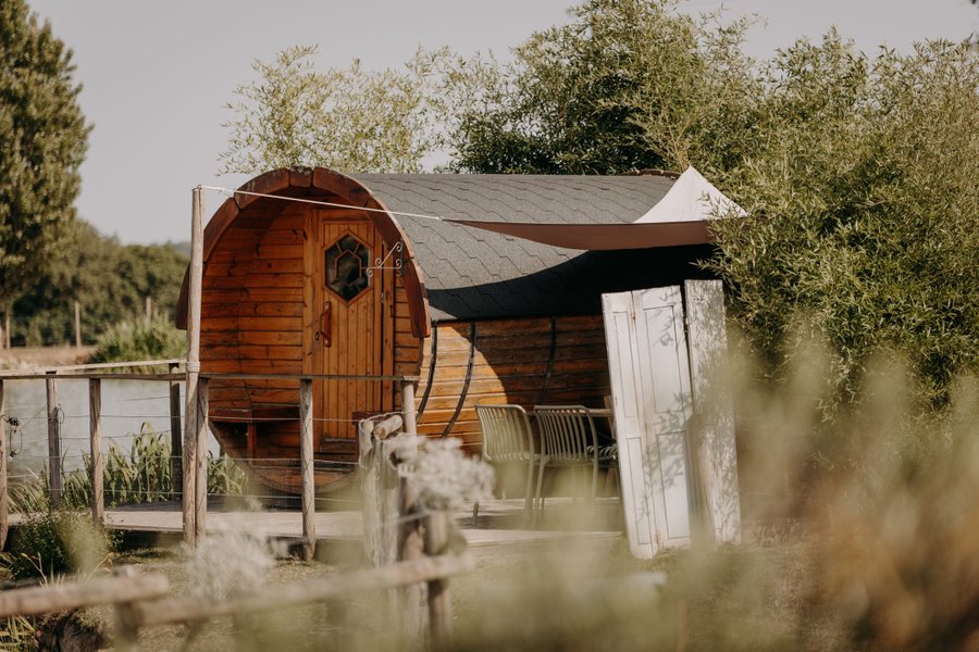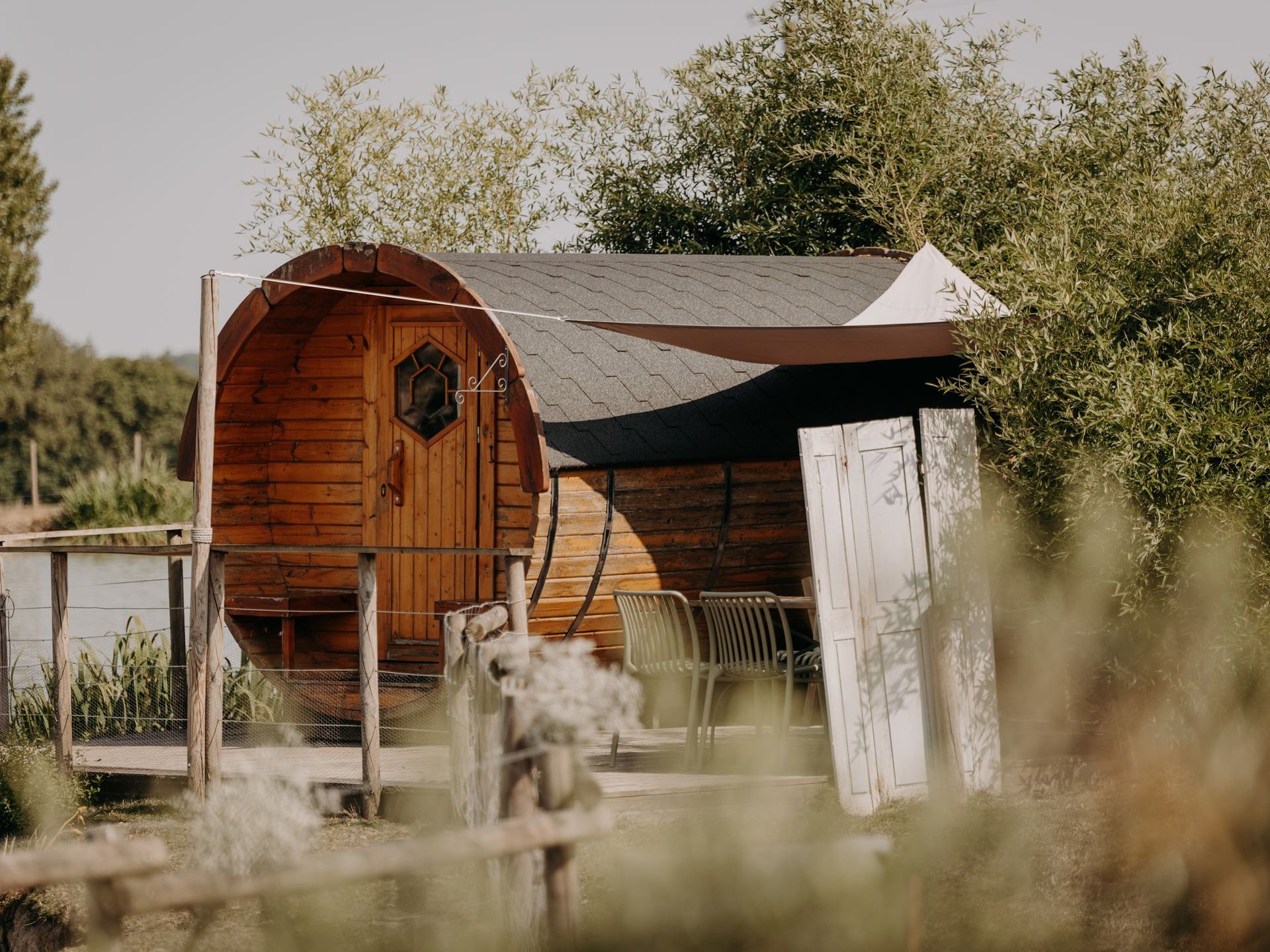 Le Tonneau "Chant des Grenouilles" se situe en bordure d'eau, où vous pourrez vous prélasser sur sa terrasse au son du clapotis de l'eau.