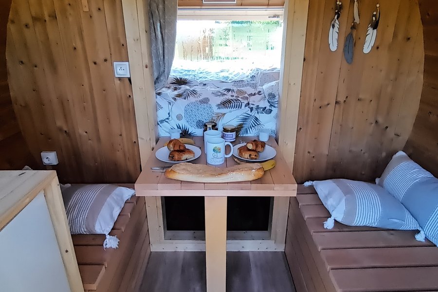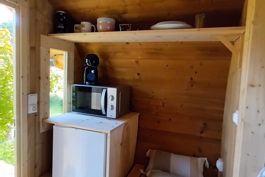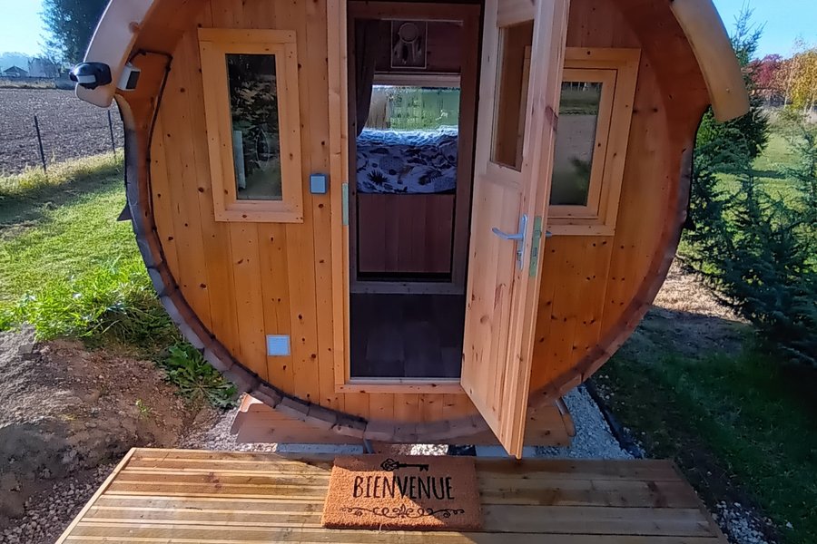 Venez vivre une expérience insolite en dormant dans un tonneau situé sur un terrain de 3000 mètres carrés !Le Tonneau bénéficie de tout le confort nécessaire : lit double de 140×190 et une petite kitchenette pour préparer vos repas (micro-ondes, petit frigo/freezer, cafetière Dolce Gusto)……