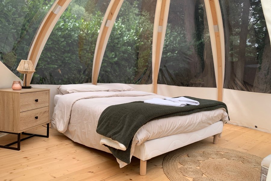 Reconnectez-vous à l'essentiel au sein d'une bulle, confortablement installés dans votre lit, vue sur les arbres et les étoiles.